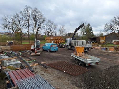 Auf dem Gelände des Bauhofs des Marktes Velden wurde mit dem Bau von zwei neuen Hallen begonnen. Dort entsteht der notwendige Platz für Lagermöglichkeiten des Bauhofs und des Wasserwerks. Den Auftrag für die Rohbauarbeiten hat die nach Ausschreibung günstigste Firma Josef Hübl erhalten