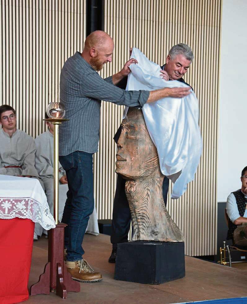 Ein besonderes Symbol der Freundschaft hatte am Sonntag eine Delegation aus der norditalienischen Partnergemeinde Roana mit nach Velden gebracht: Eine Holzskulptur des Künstlers Marco Martalar in Form eines halben Kopfes. Wie die Gäste dabei deutlich machten, symbolisiere das einerseits die räumliche Trennung, aber andererseits auch die emotionale Nähe zwischen der Kommune im cimbrischen Gebiet und Velden.